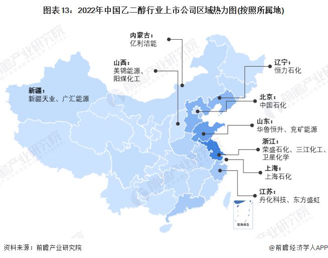目前中國乙二醇注冊(cè)企業(yè)主要分布在華北和華東地區(qū)。截止2022年7月,乙二醇行業(yè)內(nèi)的上市企業(yè)主要集中于東南沿海區(qū)域,尤其以浙江、山東、河北和遼寧為代表的省市聚集較多乙二醇上市企業(yè)。