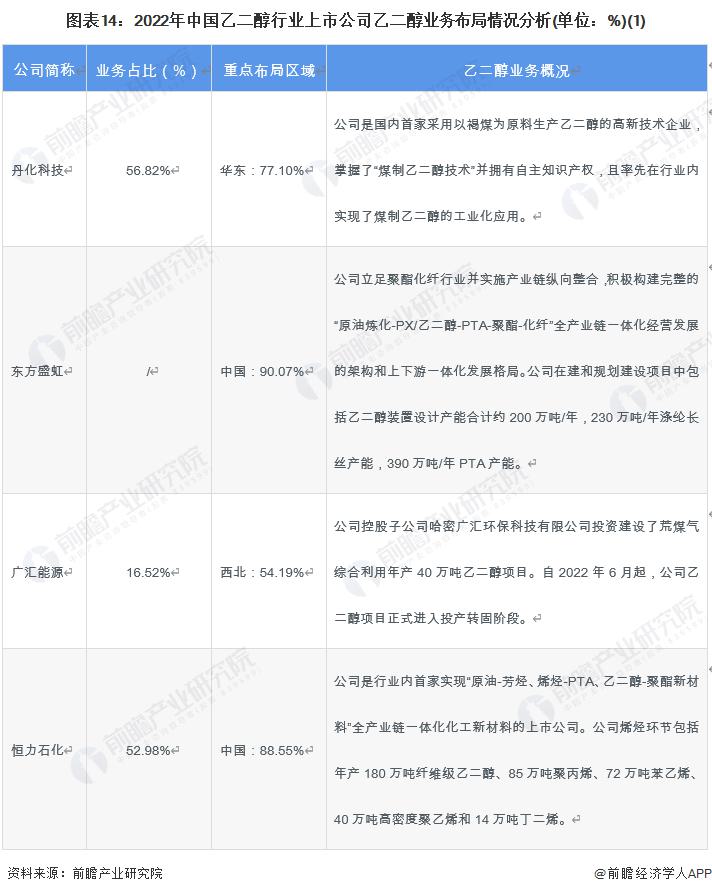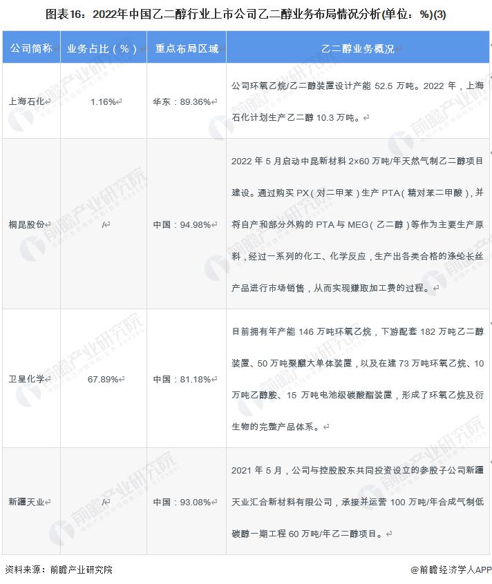 2、乙二醇行業(yè)上市公司業(yè)務(wù)布局對(duì)比