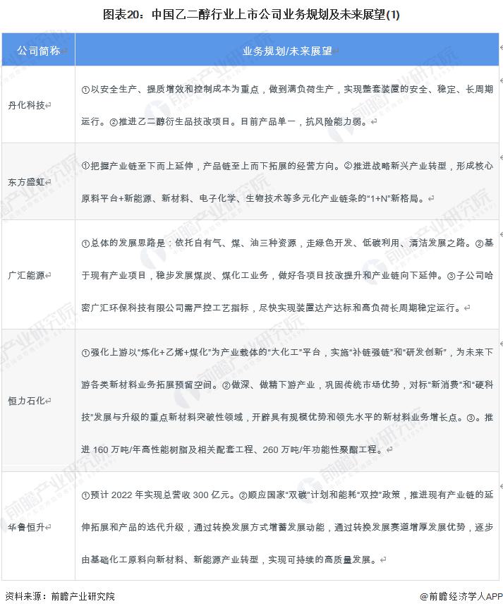 注:衛(wèi)星化學(xué)業(yè)務(wù)收入為功能化學(xué)品營業(yè)收入(包含乙二醇、聚醚大單體和環(huán)氧乙烷);兗礦能源業(yè)務(wù)收入為煤化工業(yè)務(wù)總營收。4、乙二醇行業(yè)上市公司乙二醇業(yè)務(wù)規(guī)劃對(duì)比