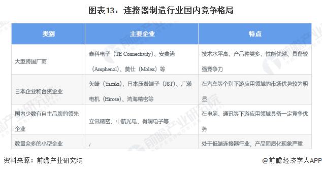 Connectivity),后兩者研發(fā)水平高,產(chǎn)品種類多、應(yīng)用廣泛,業(yè)務(wù)布局面向全球,是連接器的領(lǐng)先供應(yīng)商。國內(nèi)連接器的領(lǐng)先企業(yè)以立訊精密為代表,產(chǎn)品主要面向3C產(chǎn)業(yè)開發(fā)。在國家產(chǎn)業(yè)政策積極引領(lǐng)和下游應(yīng)用快速發(fā)展、國際產(chǎn)業(yè)轉(zhuǎn)移的推動(dòng)下,中國連接器制造行業(yè)近年來整體技術(shù)水平取得了明顯進(jìn)步,但與國際大型企業(yè)相比仍存在一定差距,主要表現(xiàn)為:領(lǐng)先企業(yè)的技術(shù)專長(zhǎng)領(lǐng)域較為局限,限制了企業(yè)的業(yè)務(wù)開拓能力,難以和國際巨頭進(jìn)行全方位競(jìng)爭(zhēng);多數(shù)企業(yè)主動(dòng)創(chuàng)新能力較差,仍處在追趕國際領(lǐng)先技術(shù)的過程中;關(guān)鍵制造設(shè)備上缺乏自主創(chuàng)新能力,進(jìn)口依賴度較高。這些差距對(duì)國內(nèi)連接器制造行業(yè)向高端技術(shù)、高端產(chǎn)品全面發(fā)展構(gòu)成了一定挑戰(zhàn)。產(chǎn)業(yè)發(fā)展前景及趨勢(shì)預(yù)測(cè)