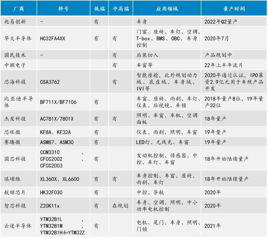 國內(nèi)具有車規(guī)MCU產(chǎn)品線的廠商