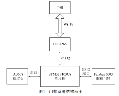 該門禁系統(tǒng)以單片機(jī)為核心,通過串口與指紋傳感器連接實(shí)現(xiàn)雙向通信,獲取指紋數(shù)據(jù);通過Wi-Fi模塊利用手機(jī)App維護(hù)指紋庫;單片機(jī)通過GPIo接口產(chǎn)生PeM信號(hào)控制舵機(jī)運(yùn)動(dòng)開鎖;單片機(jī)通過Wi-Fi模塊與手機(jī)實(shí)現(xiàn)雙向通信。電源部分電路則對(duì)板上所有系統(tǒng)進(jìn)行供電。
