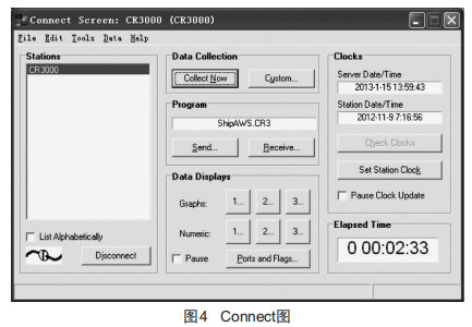 第四步,在完成設(shè)置以后關(guān)閉Setup,回到LoggerNet主界面,單擊Connect按鈕進(jìn)行連接,出現(xiàn)圖4。