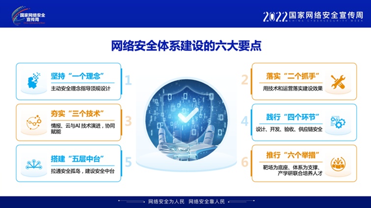 在剛剛結(jié)束的2022國(guó)家網(wǎng)絡(luò)的安全宣傳周期間,紫光股份旗下新華三集團(tuán)圓滿承辦安全周重點(diǎn)活動(dòng)——長(zhǎng)三角網(wǎng)絡(luò)的安全協(xié)同發(fā)展論壇。其間,新華三集團(tuán)副總裁、新華三信息安全技術(shù)有限公司總裁孫松兒在大會(huì)中發(fā)表主旨演講,他明確指出在當(dāng)前我國(guó)政策環(huán)境持續(xù)向好的同時(shí),也不能忽視產(chǎn)業(yè)發(fā)展過(guò)程中呈現(xiàn)出的多重矛盾與挑戰(zhàn),唯有把握網(wǎng)絡(luò)的安全體系建設(shè)的六大要點(diǎn),才能實(shí)現(xiàn)化解產(chǎn)業(yè)矛盾、夯實(shí)產(chǎn)業(yè)基礎(chǔ)、建設(shè)網(wǎng)絡(luò)強(qiáng)國(guó)的目標(biāo)。