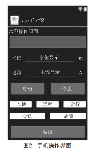 通過安卓智能手機(jī)客戶端進(jìn)行監(jiān)控和操作。該種方法不受地域影響,只要有中國移動網(wǎng)絡(luò)覆蓋,即可對設(shè)備進(jìn)行操控,適用于偏遠(yuǎn)的水源井如清泥溝一級泵站和東泉水源地泵站。
