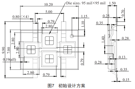 如圖4所示,方案C對稱放置,中間一個(gè)clip和晶粒放置在下方。