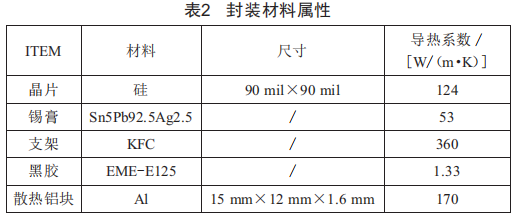 TT產(chǎn)品模擬中具體所要用到的材料物理系數(shù)如表2所示。