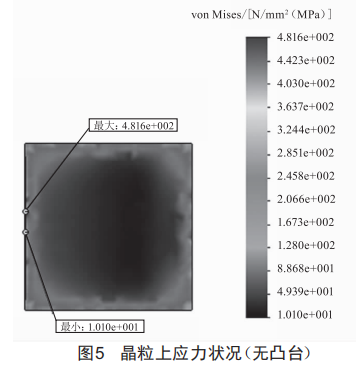 圖6為支架有凸臺時(shí)晶粒上應(yīng)力狀況的模擬仿真圖。