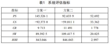 本文首先基于電源經(jīng)濟(jì)效益(Ps)、負(fù)荷經(jīng)濟(jì)效益(Cs)、阻塞管理成本(Cw)、系統(tǒng)側(cè)總投資成本(s2)以及HHI指數(shù)評(píng)估上述兩種投資方案,結(jié)果如表1所示。