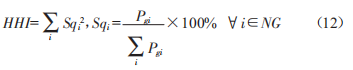 對(duì)于電力市場(chǎng)而言,HHI指數(shù)介于0~100之間。HHI指標(biāo)反映了各發(fā)電單元的市場(chǎng)勢(shì)力的占比情況,表征了發(fā)電單元的市場(chǎng)集中程度,HHI指數(shù)是典型的市場(chǎng)集中度指標(biāo)。