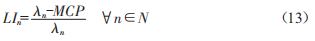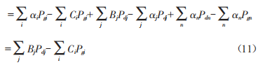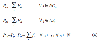 式中,a為邊界電價(jià)(LocationMargina1Price,LMP),an為節(jié)點(diǎn)n的邊界電價(jià):N為系統(tǒng)節(jié)點(diǎn)總數(shù):Pgn為節(jié)點(diǎn)n的電源輸出功率:Pdn為節(jié)點(diǎn)n的負(fù)荷總功率:P1n為流入節(jié)點(diǎn)n的功率。