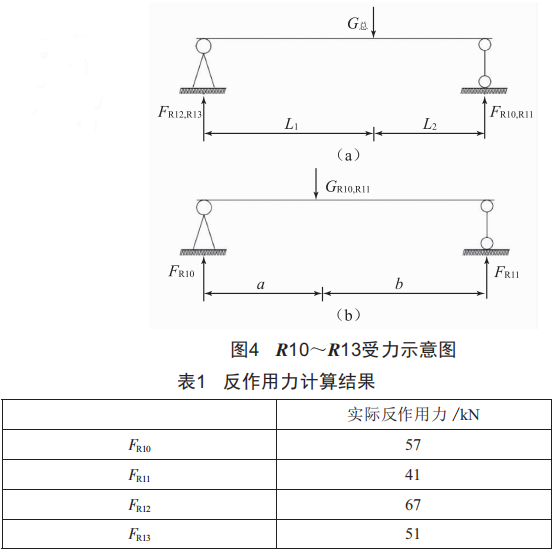 還是以上面列舉的改造項(xiàng)目為例,按照?qǐng)D4計(jì)算得到的反作用力大小如表1所示。