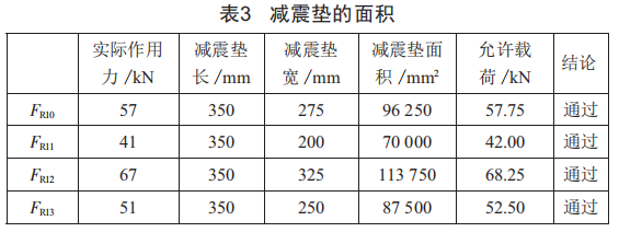 還是以上面列舉的改造項(xiàng)目為例,計(jì)算后減震墊的面積如表3所示。