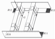 通過圖3可以看出,在允許的尺寸范圍內(nèi)(寬度適用范圍1500~2000mm,長(zhǎng)度最大4000mm),馬達(dá)支架的寬度和長(zhǎng)度可以任意調(diào)整,但隨著尺寸的變化,4個(gè)支撐點(diǎn)R10~R13反力也在變化,計(jì)算R10~R13這些反力需要考慮作用力和反作用力的平衡5F=0、扭矩在任意軸的平衡5M=0、板殼理論等。筆者在多次實(shí)際運(yùn)用中發(fā)現(xiàn)可以簡(jiǎn)化成工程中常用到的靜定梁模型來計(jì)算,誤差幾乎都在可控范圍內(nèi)。