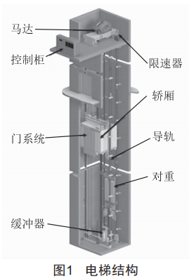電梯設(shè)備是由機(jī)電合一的相關(guān)部件和組合件組裝在一起的整體設(shè)備,每個(gè)部件都發(fā)揮著其各自的作用,有著各負(fù)其責(zé)的使命。它的主要組成部分可以從圖1中看出。