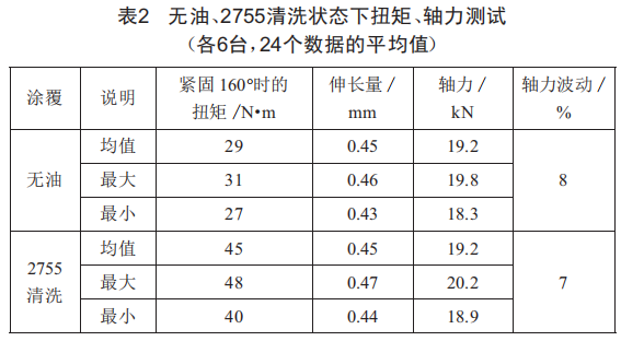 3.2涂機(jī)油、無油、2755清洗軸力比較試驗