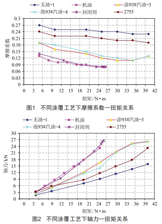(2)無油、涂機(jī)油、涂汽油狀態(tài)下扭矩緊固法軸力。