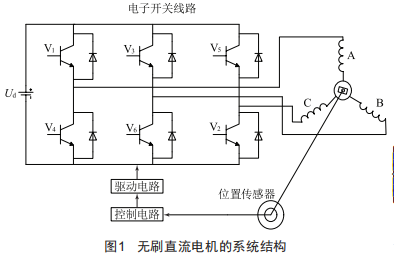 本文分析的無刷直流電機(jī)均采用星形接法,工作在傳統(tǒng)的兩兩通電方式,其控制系統(tǒng)包含驅(qū)動(dòng)電路模塊、控制電路模塊、位置傳感器模塊、無刷電機(jī)模塊等結(jié)構(gòu),如圖1所示。