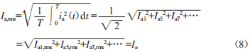 式中,E和I為電流和電壓各次諧波大小:on為每相電流與電壓諧波相位之差。