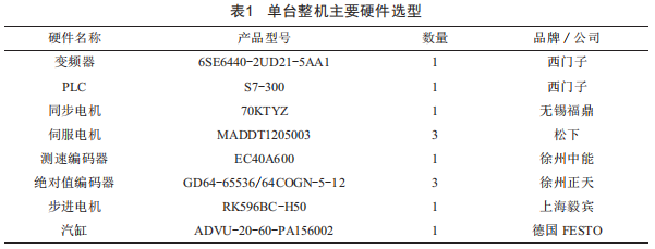 步進電機的選擇:步進電機用來控制機桿的垂直升降運動,由于機頭輪的垂直升降應(yīng)平穩(wěn),且不能發(fā)生過沖現(xiàn)象,本系統(tǒng)選用的是型號為RK596BC一H50的步進電機。本次控制系統(tǒng)單臺整機主要相關(guān)硬件選型如表1所示。