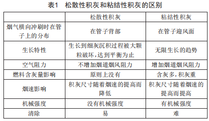 兩種積灰的主要特點和區(qū)別如表1所示。