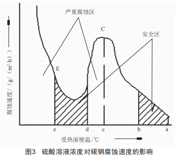 在d一e區(qū)域,金屬壁溫進一步降低,硫酸溶液腐蝕性下降,腐蝕速度降低,故把這一區(qū)域稱為第二安全區(qū)。