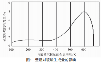 溶液中H2so4的濃度比蒸汽中H2so4的濃度要高得多。硫酸蒸汽在受熱面上凝結時,煙氣中硫酸和水蒸氣的濃度一直在下降,其露點也在下降。這是因為煙氣向后流動,從而造成了金屬壁溫下降,這也進一步造成了硫酸蒸汽以及水蒸氣的凝結,所以硫酸濃度一直在下降。