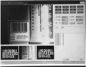 控制算法的增加主要是由噴碼機(jī)字符在噴印過程中存在字體變形造成的,噴碼機(jī)由于壓力、振幅等多種因素字體會(huì)發(fā)生微小的變化,從而增加機(jī)器的分辨難度。其次,由于長時(shí)間的使用,字符差別較大,進(jìn)而造成系統(tǒng)需要不停地學(xué)習(xí)。學(xué)習(xí)了大量字符之后的系統(tǒng)反應(yīng)時(shí)間受到影響嚴(yán)重,同時(shí)造成計(jì)算機(jī)經(jīng)常死機(jī)。經(jīng)過充分的多次實(shí)驗(yàn),增加了字符數(shù)檢測的算法,在設(shè)備運(yùn)行比較平穩(wěn)時(shí)采用字符檢測方式,設(shè)備能準(zhǔn)確、平穩(wěn)運(yùn)行。其他時(shí)間則采用字符數(shù)檢測的方式,這樣可以保證設(shè)備的穩(wěn)定性,實(shí)現(xiàn)設(shè)備的性能匹配,保證"三期"信息的有效檢測。字符數(shù)檢測可以保證較快的運(yùn)算速度和反應(yīng)速度,同時(shí)降低使用人員的學(xué)習(xí)難度,之后計(jì)算機(jī)再也沒有發(fā)生過死機(jī)現(xiàn)象。改進(jìn)后的軟件界面如圖2所示。