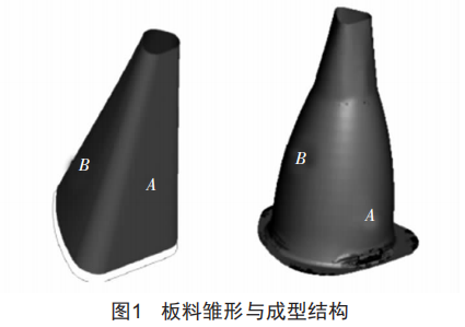 通常的拉伸法是一塊平面板料通過(guò)多次拉伸成筒型,基本是中心軸對(duì)稱整體成型,受力均勻:而此一次拉伸成型需要的雛形板料比較特殊,需要事先人工將板料折彎、壓卷成一定的形狀,再焊接成類似上下梯形筒狀雛形,然后放到模具直接一次拉伸成型。由于雛形板料非軸對(duì)稱,在于圓形凸模接觸拉伸時(shí)受力不均勻,經(jīng)常會(huì)出現(xiàn)筒壁靠近底部在拉伸過(guò)程中開裂的情況。
