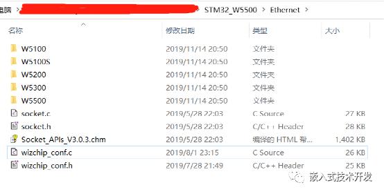 下載完成后,可以看到,驅(qū)動庫中包含了W5100、W5200等多個芯片的驅(qū)動: