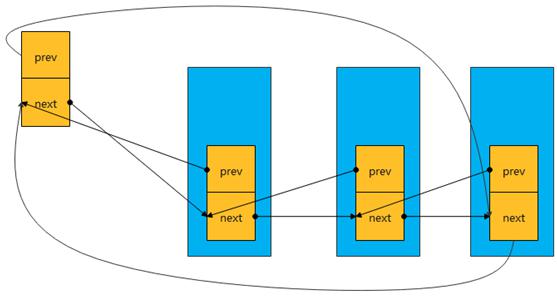 struct list_head { struct list_head *next, *prev;};