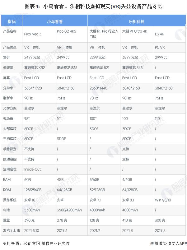 2021年,小鳥看看和樂相科技分別發(fā)布了兩款VR頭顯設(shè)備Neo 3和大朋P1 Pro行業(yè)入門版,其中,Neo 3的操作系統(tǒng)、運(yùn)行和存儲內(nèi)存、操作系統(tǒng)以及價格等方面較有優(yōu)勢。
