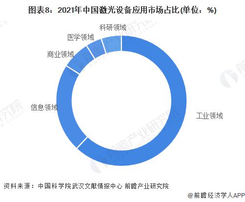 我國(guó)激光設(shè)備主要應(yīng)用在工業(yè)、信息、商業(yè)、醫(yī)學(xué)以及科研領(lǐng)域。根據(jù)中國(guó)科學(xué)院武漢文獻(xiàn)情報(bào)中心數(shù)據(jù)顯示,2021年工業(yè)領(lǐng)域激光設(shè)備市場(chǎng)占比最大,達(dá)62%,其次為信息領(lǐng)域激光設(shè)備市場(chǎng),占比達(dá)22%;商業(yè)領(lǐng)域占比7%,醫(yī)學(xué)領(lǐng)域占比4%,科研領(lǐng)域占比5%。