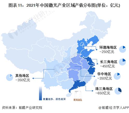國(guó)內(nèi)已形成華中、珠三角、長(zhǎng)三角和環(huán)渤海四大產(chǎn)業(yè)集群。湖北武漢憑借強(qiáng)大的院校和完備的工業(yè)基礎(chǔ),在光谷形成了完整的激光產(chǎn)業(yè)鏈,2021年產(chǎn)值超350億元。珠三角的深圳以中低功率激光起步,繼武漢之后成為國(guó)內(nèi)第二大激光產(chǎn)業(yè)聚集地。占全國(guó)市場(chǎng)32%,產(chǎn)業(yè)規(guī)模達(dá)650億元;長(zhǎng)三角地區(qū)以高功率激光切割焊接設(shè)備為主,環(huán)渤海以高功率激光熔覆設(shè)備和全固態(tài)激光器件為主,產(chǎn)值占比達(dá)21%,產(chǎn)業(yè)規(guī)模達(dá)450億元;環(huán)渤海地區(qū)增長(zhǎng)15%,產(chǎn)業(yè)規(guī)模達(dá)250億元。其他地區(qū)如西部、東北地區(qū)具備增長(zhǎng)潛力,產(chǎn)業(yè)規(guī)模達(dá)350億元。