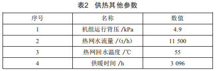 供熱抽汽參數(shù)為0.4MPa/245℃,額定抽汽流量為2×550t/h。根據(jù)北方供熱電廠調(diào)研結(jié)果,35萬(wàn)kw機(jī)組穩(wěn)定運(yùn)行抽汽流量一般維持在2×450t/h。本著從實(shí)際出發(fā)的原則,抽汽流量按2×450t/h進(jìn)行分析。其他設(shè)計(jì)條件如表2所示。