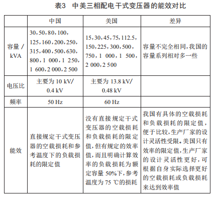 3中美兩國(guó)三相配電干式變壓器的能效對(duì)比