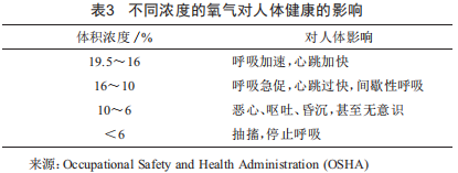 室內(nèi)02濃度一般在19.5%~23.5%(0sHA),02濃度不足時對人體的影響如表3所示。