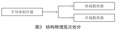 根據(jù)功能要求,半導體制冷器機械結構可以劃分為兩個模塊,分別為熱端散熱器、冷端散熱器,如圖3所示。