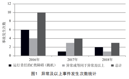 (1)通過一系列大膽創(chuàng)新的優(yōu)化,有效降低了運(yùn)行人員由于人為因素造成的責(zé)任事件的發(fā)生概率,提高了運(yùn)行人員總體的安全意識(shí)及大局觀,為穩(wěn)定公司整體的安全形勢(shì)做出了突出貢獻(xiàn)。根據(jù)統(tǒng)計(jì)得出如圖1所示柱狀圖,2016一2018年,人為原因造成的運(yùn)行異常及以上事件發(fā)生次數(shù)呈逐年遞減的趨勢(shì)。