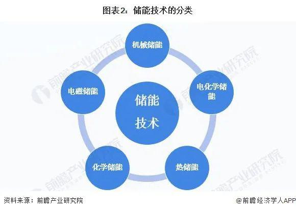 根據(jù)不同儲能技術(shù)儲存介質(zhì)的不同,儲能主要分為機械儲能、電化學(xué)儲能、熱儲能、化學(xué)儲能、電磁儲能等。利用這些儲能技術(shù),電能以機械能、化學(xué)能、熱能等形式存儲下來,并適時反饋回電力網(wǎng)絡(luò)。