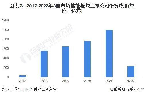 儲能行業(yè)經(jīng)過多年發(fā)展,儲能項目廣泛應(yīng)用,行業(yè)整體研發(fā)投入水平較高。從A股市場來看,2017-2021年,我國儲能板塊上市公司研發(fā)總費用逐年增長,2022年第一季度,儲能板塊上市公司研發(fā)總費用約228.45億元。
