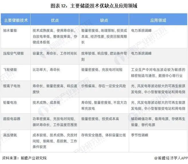 其中,成熟度較高的主要儲能技術(shù)優(yōu)缺點及應(yīng)用領(lǐng)域如下: