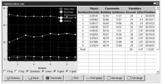 圖1為優(yōu)化設計計算結(jié)果。運用有限元軟件solve/runoptimization對散熱器進行優(yōu)化設計,計算結(jié)果顯示:肋片數(shù)量29個,肋片厚度2.47mm,此時散熱器熱阻最小。