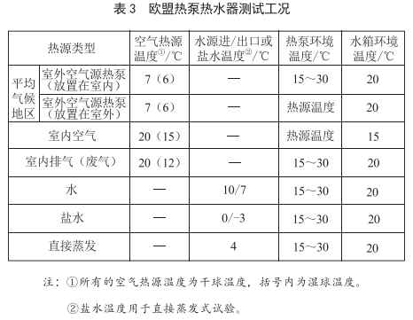 歐盟空氣源熱水器的測試,可按熱源類型進(jìn)行區(qū)分,詳細(xì)測試工況要求如表3所示。
