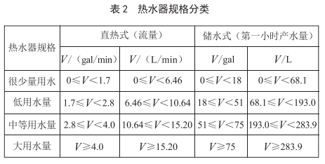按照熱水量流量(直熱式)和第一小時(shí)產(chǎn)水量,確定放水模型,標(biāo)準(zhǔn)將熱水器分成了4種使用情況:很少量用水、低用水量、中等用水量、大用水量,每種用水量的區(qū)別如表2所示。