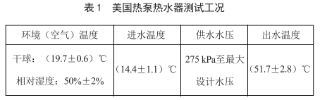 美國熱泵熱水器測試工況主要包括環(huán)境(空氣)溫度、進(jìn)水溫度、供水水壓、出水溫度等,具體要求如表1所示。