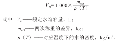 兩次稱重(力舊)之間的差異用升標(biāo)示,并根據(jù)下列公式進(jìn)行修正,計(jì)算水箱容積。