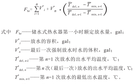 (5)第一次放水:當(dāng)水箱達(dá)到平均最大水溫并停機(jī)后開始放水,記錄開始放水的時(shí)間并將其標(biāo)記為0(,.=0,上標(biāo)*用于標(biāo)記與第一小時(shí)額定值測試相關(guān)的變量),放水開始15s后按5s的時(shí)間間隔記錄出水溫度直到放水結(jié)束。記錄此次放水期間出水的最高溫度尸皿皿,當(dāng)出口水溫下降8.3笆時(shí)終止放熱水。結(jié)束放水后,測量平均出水溫度、放水的質(zhì)量或容積。