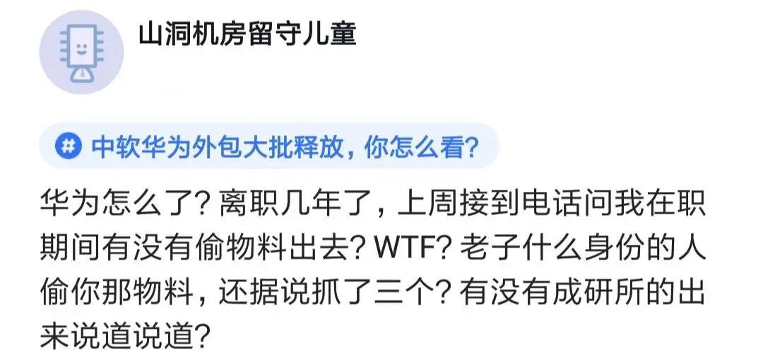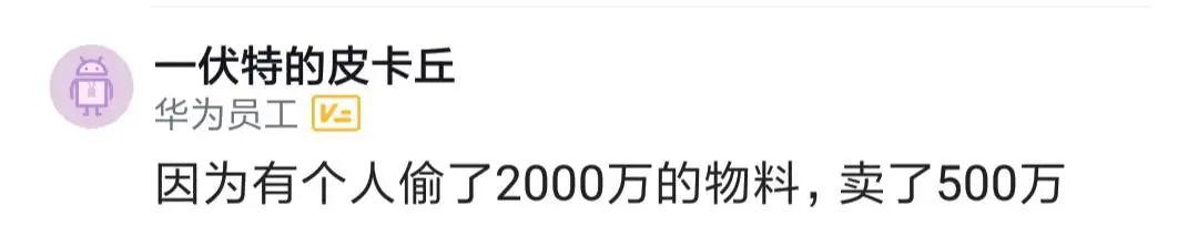 華為怎么了?離職幾年了,打電話問我在職時有沒有偷物料,聽說已經(jīng)抓了三個人!有人偷了2000萬的物料,賣了500萬!