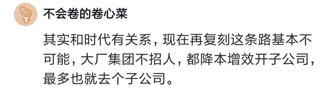 有人說,就是和時代有關(guān)系,現(xiàn)在再復刻這條路基本不可能,大廠集團不招人,最多去個子公司。